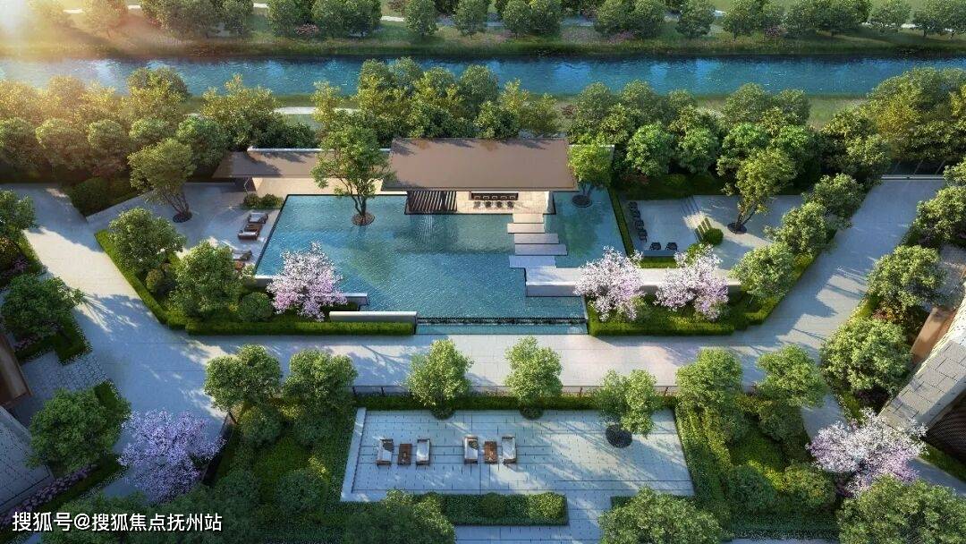 社区外部沿河景观廊道,铺陈花园小品设计,赋予居者一方徜徉水岸,沉醉于自然诗意,在城市繁华中拾起自然的生活乐趣。