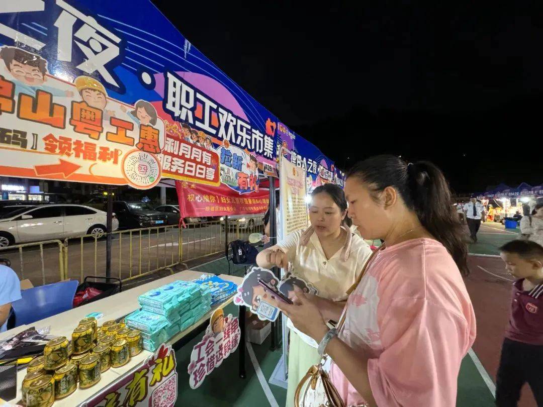 除了精彩的赛事外,“德BA之夜·职工欢乐市集”也一连四日在顺德体育中心举行,现场开设顺德美食、精品文创、非遗手工、游戏互动等40多个摊位,满足职工对多元化文娱生活需求。