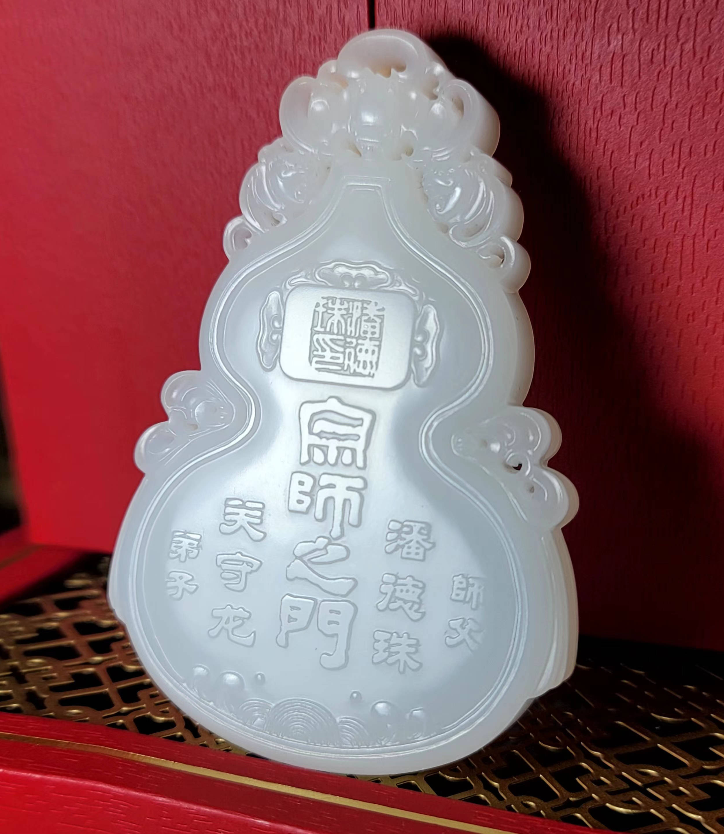 潘氏宗门弟子福禄玉佩从选材到设计,再到精雕细琢,每一步都体现了精湛技艺和深厚造诣。玉佩采用葫芦和蝙蝠元素,象征潘氏门徒多子多福,宗师之德,福荫子孙,将福禄的寓意融入其中,并且刻有弟子之名,使得福禄玉佩都是独一无二的宗门信物。