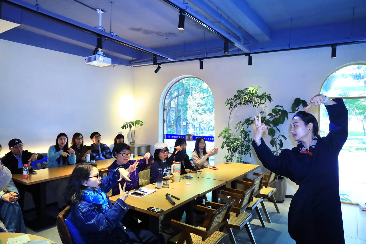 第一节课是手语初体验,大家学习了“你好”“我是……”等基础表达。课堂学员来自各行各业,有律师、社区志愿者、大学生等等。“我们有时会接触到听障人士前来维权,可沟通不畅常常让解释法律条文变得困难,所以特别想学一些手语,真正走进他们的世界。”北京尚公(杭州)律师事务所的周浩律师这样说。