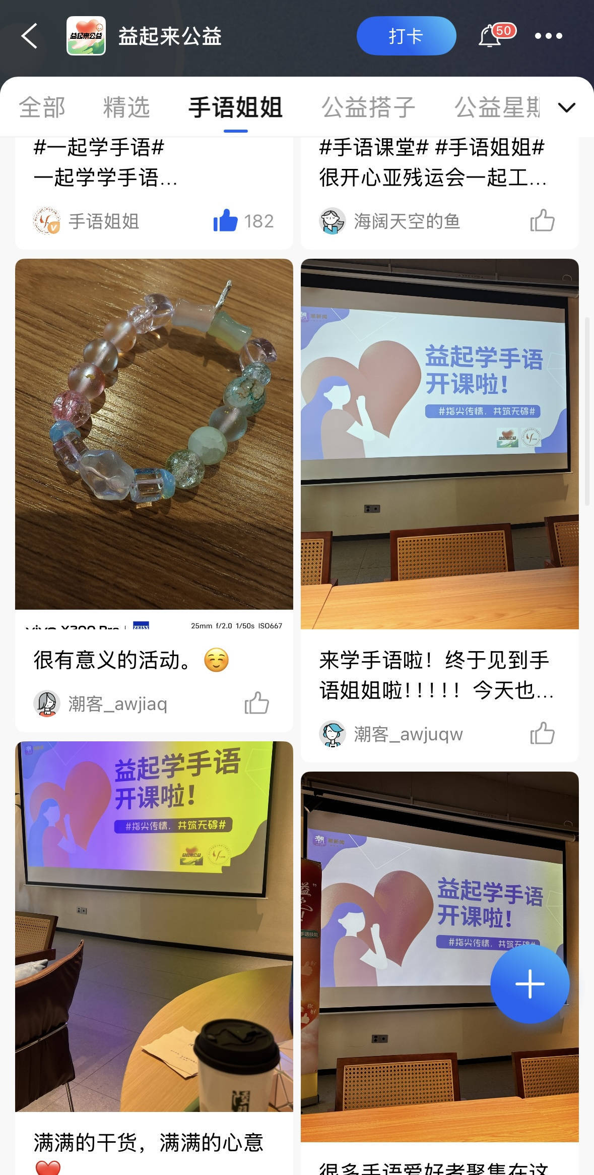 11月15日,潮新闻“”潮圈公益课堂开课啦,首期系列课程携手助残机构“手语姐姐”公益团队,带大家“益起学手语”,走进无声世界,学习无障碍志愿服务知识。课程刚结束,学员们就迫不及待地在“手语姐姐”板块分享了自己的收获与心情。