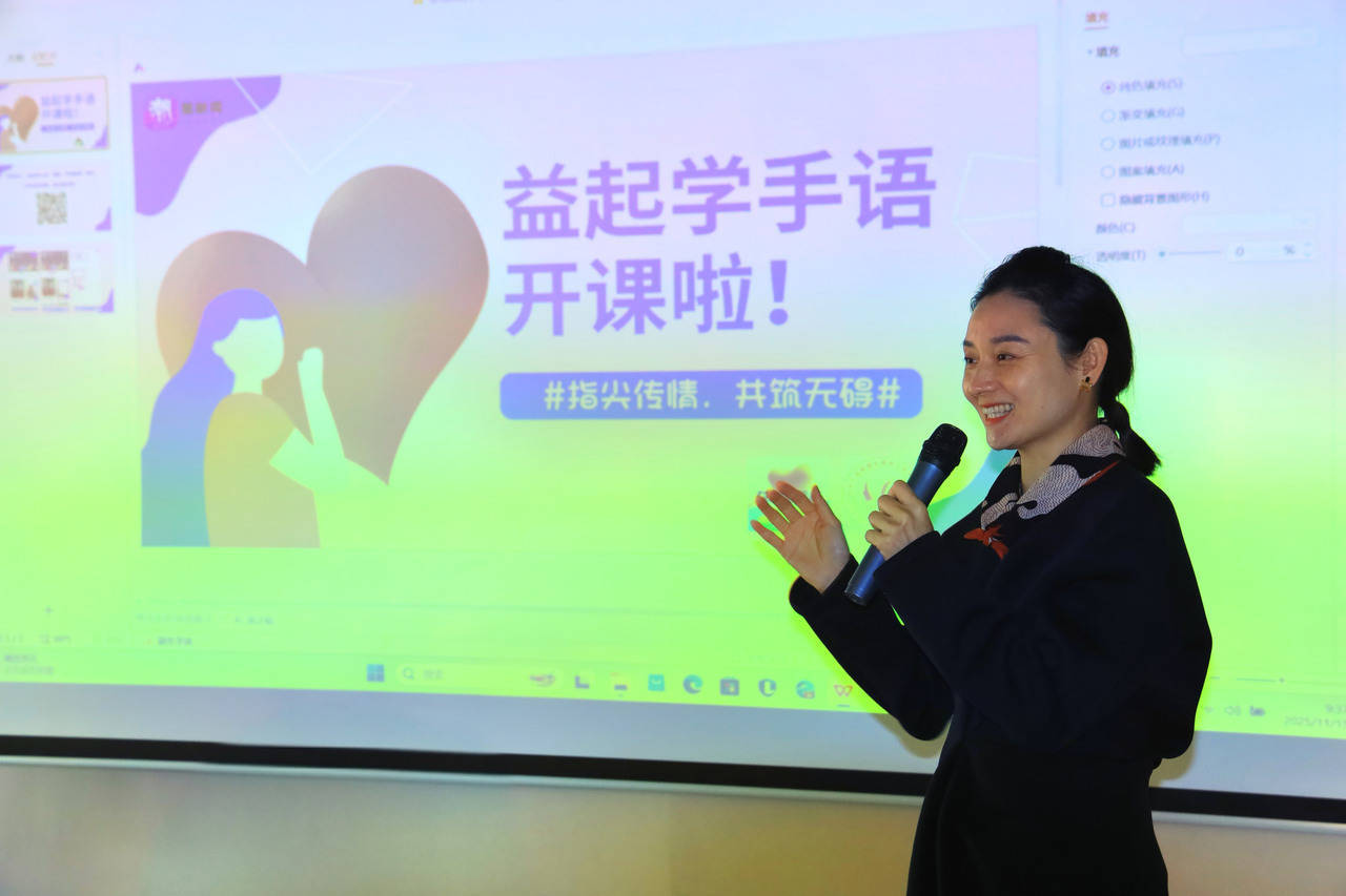 本次课程的主讲老师,是杭州手语姐姐无障碍交流服务中心创始人毛董莱。整堂课轻松有趣,无障碍交流的知识“干货”满满!