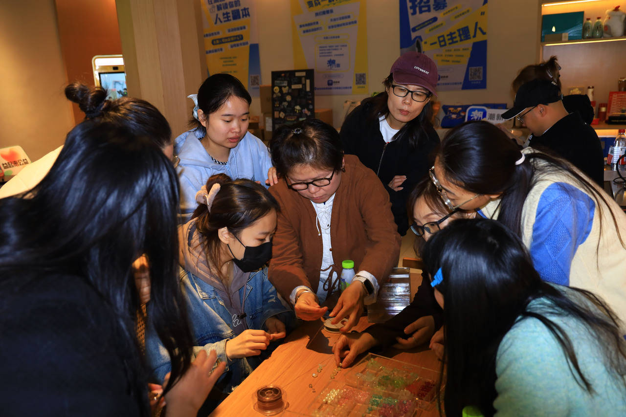 课堂上,听障主理人吴静霞也分享了自己的公益经历,还带着大家一起动手DIY串珠,体验创造的乐趣。