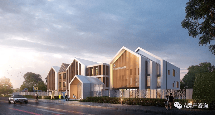 独特的建筑设计:建筑设计融合了中式建筑的精髓与现代设计元素,形成独特的视觉魅力。建筑外立面采用三段式构图,运用双重批檐、大挑板及格栅等设计手法,搭配钢化玻璃和铝板材料,展现出新中式院墅的美学氛围。