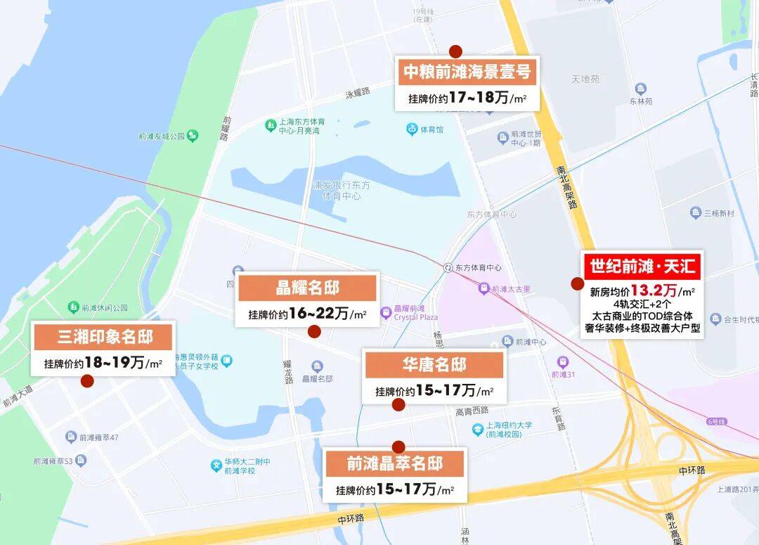 当下,前滩板块的二手房挂牌价普遍在15-18万!那么地标豪宅——世纪前滩·天汇你认为价值几何?