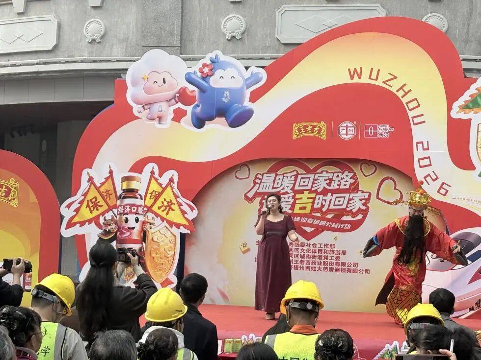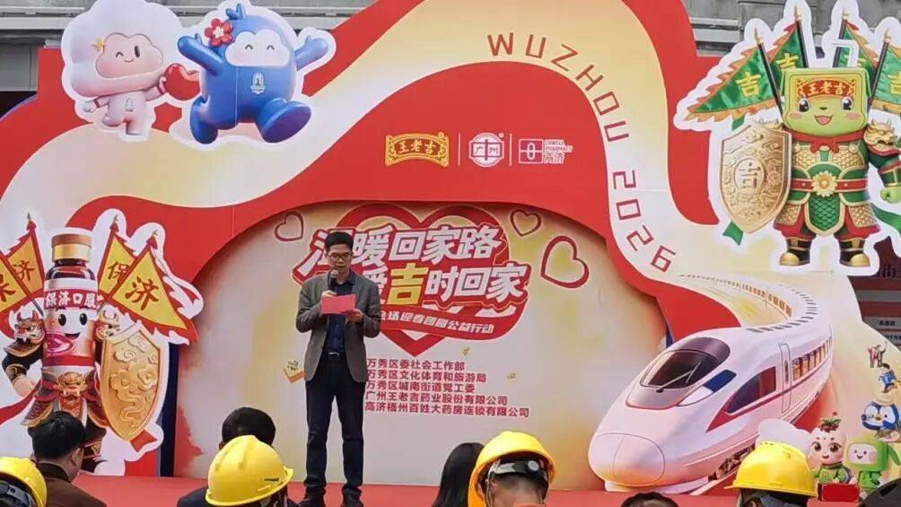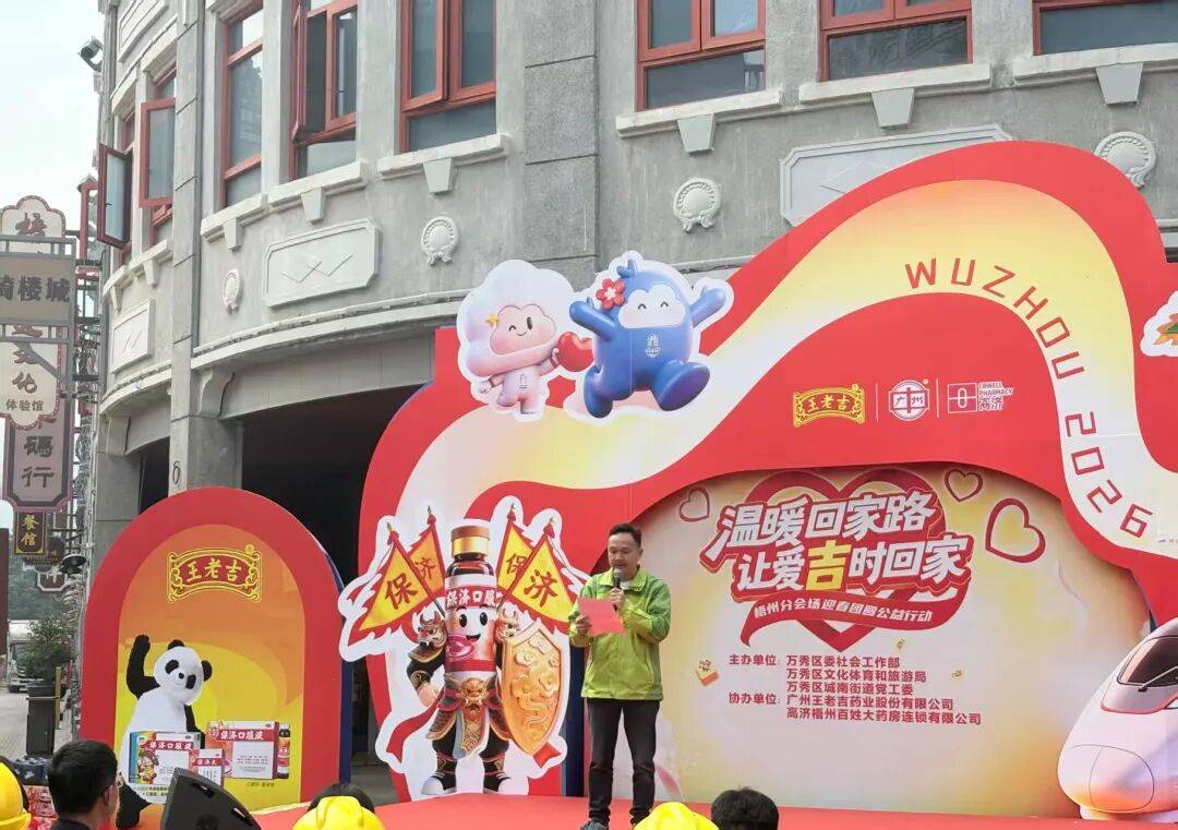 启动仪式现场气氛热烈,万秀区委社会工作部、万秀区文化体育和旅游局及城南街道相关人员、广州王老吉药业广西大区经理黎文军、高济梧州百姓大药房总经理韦超华等嘉宾出席活动。现场回顾了王老吉“温暖回家路”14年公益历程:从爱心大巴护送、高速驿站热茶供应,到健康礼包陪伴与温情问候传递,点滴善举汇聚成平安温暖的团圆之路。
