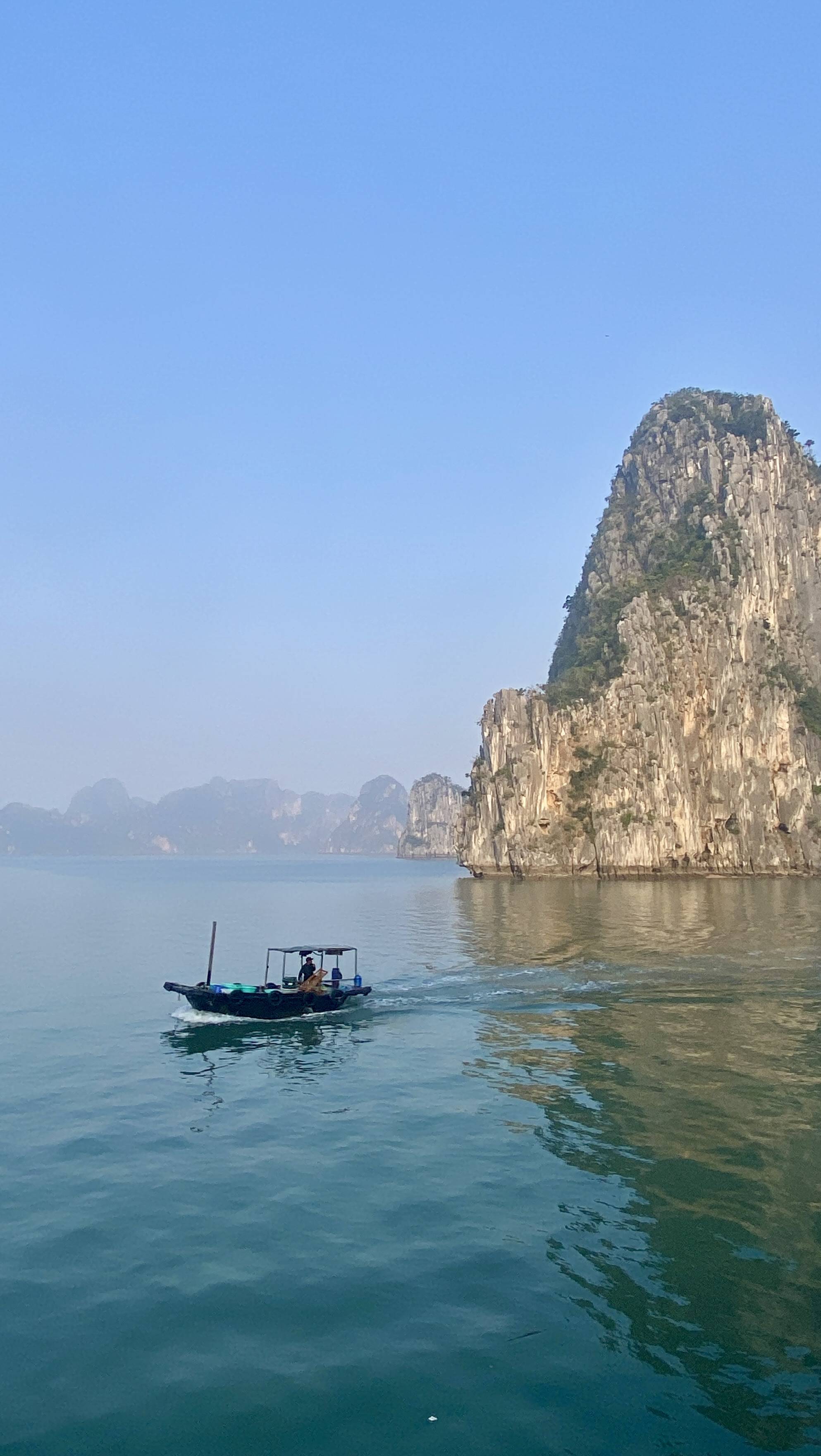 早餐后,先前往白斋坊陶瓷浮雕彩色壁画广场,这里能让50、60、70年代的人仿佛穿越时光,而且一路花香沁人心脾,一半花一半海的景色美不胜收。随后乘坐古香古色的越南实木游船,游览世界七大自然奇观[海上桂林·下龙湾]。在游船上,可以观赏到狗爬山、香炉山、斗鸡石等景观,感受“船在水中走、人在画中游”的意境。下龙湾海面上星罗棋布着众多大小岛屿和奇峰异石,山连水、水连山,鬼斧神工、千变万化、烟波浩淼,令人叹为观止。乘船从斗鸡石出发游览[迷宫仙境],能看到大拇指山、九马画山、佛祖山等千姿百态的景色。在船上享用越南渔民特色中餐后,前往[天堂岛],登上山顶可以俯瞰下龙湾全景,拍摄美照。还可以乘坐快艇(或红木游船)前往[月亮湖],换成小木船进入洞内,月亮湖是一个360度皆为垂直绝壁的封闭海湾,湖水清澈见底,水平如镜,从上面俯瞰圆如满月,空灵幽闭的景色让人陶醉。最后乘船返码头,晚餐后入住酒店。