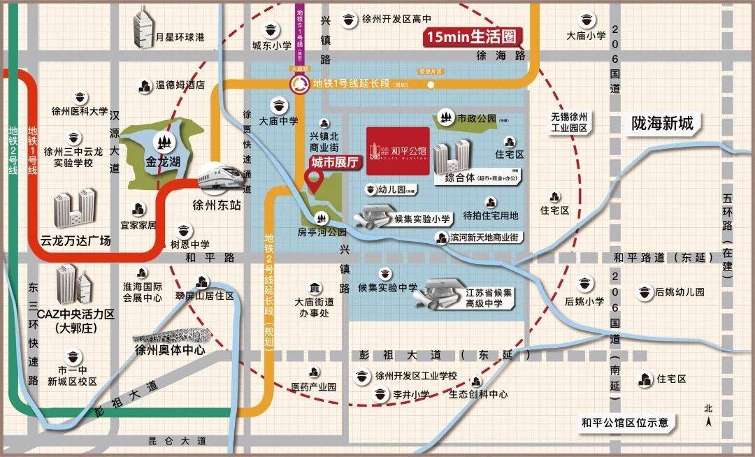 板块价值:徐州自2005年政府提出 “东进南扩,城市向东”的战略,从2005年到2021年,“东进”的脚步从和平桥、万达、高铁,到现在的大庙,已经跨入到4.0时代,19年底和平路与徐贾快速路通车,大庙已完全融入城市核心东区,随着无锡产业园区的建立,大庙未来将像宿迁的苏宿产业园区一样,成为徐州东部门户,产城一体宜业宜居!